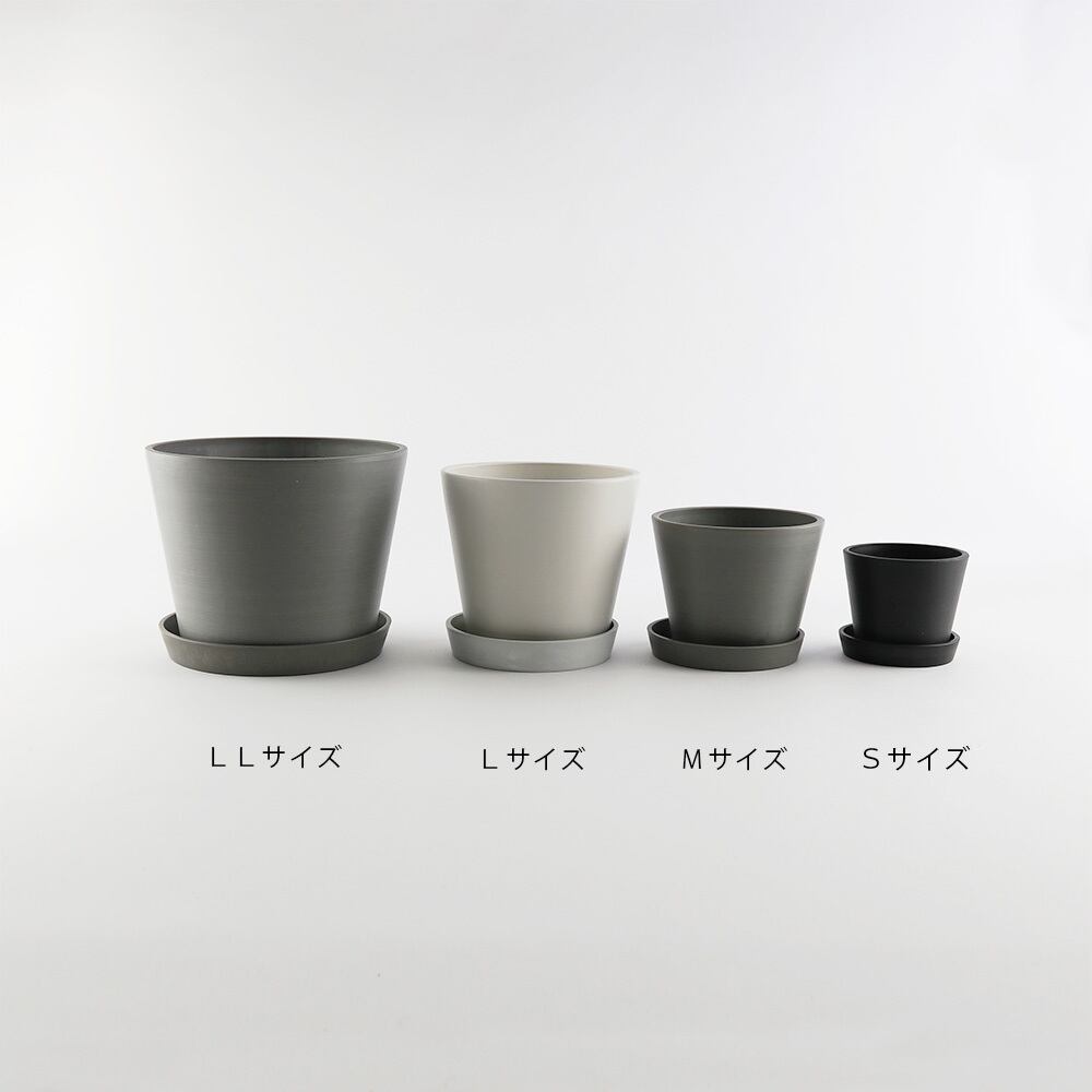 本商品は、鉢と受け皿ともに全4サイズ、3色展開となりますので、お部屋やお庭にやわらかい印象を与えたい時や清潔感を出したい時、またキリっと引き締めた印象を演出した場合など、自分好みのテイストで色をお選びいただけます。