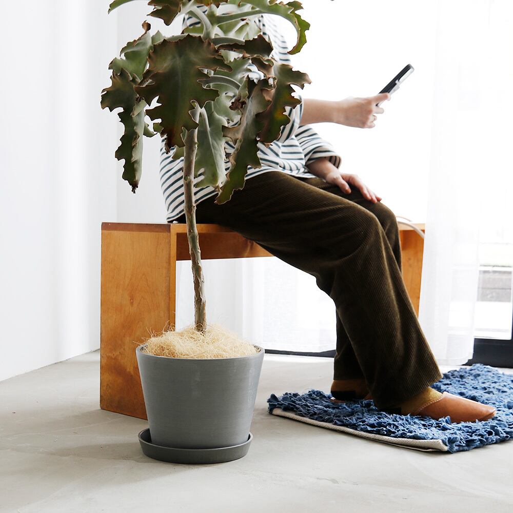 エコ素材ですが、しっかりとした重厚感があり、深みのある色合いがインテリアにも馴染み、植物も映えます。
