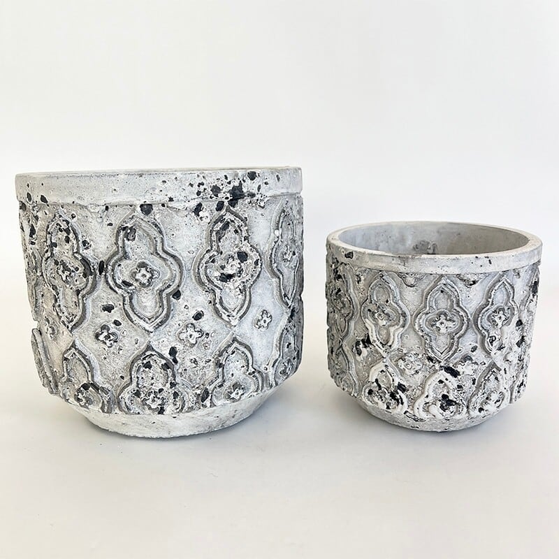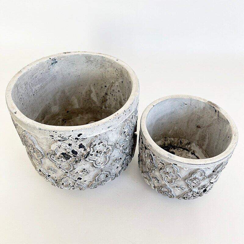 立体的な模様と落ち着いたトーンが魅力のフラワーポット。