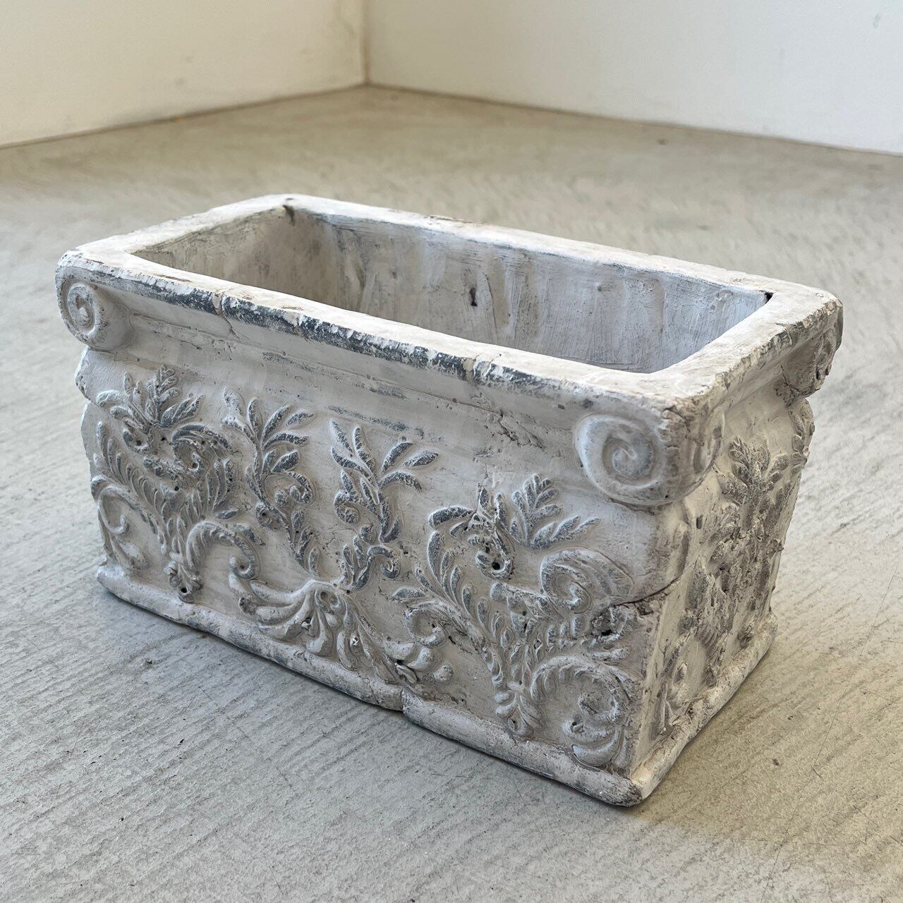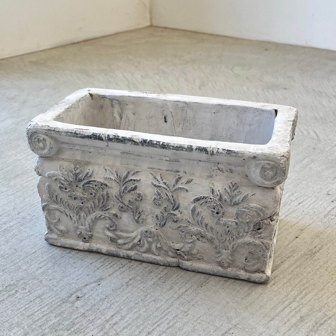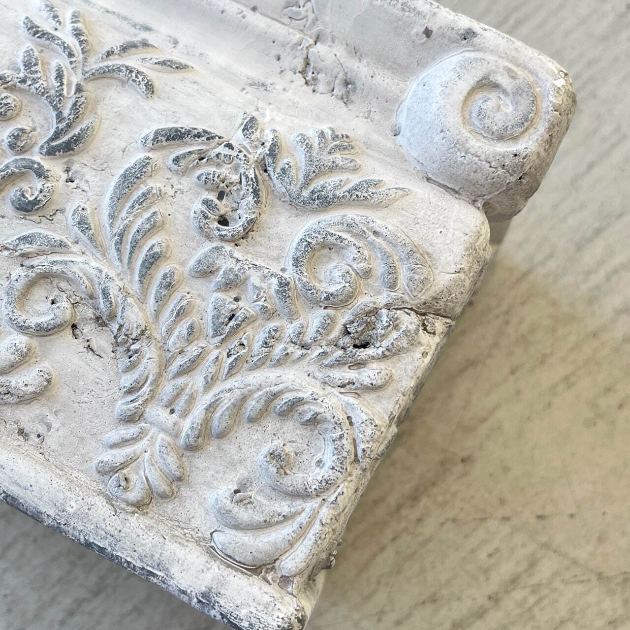 シャビーな白色と繊細な模様は、ナチュラルガーデンやカントリー調インテリアにぴったり。