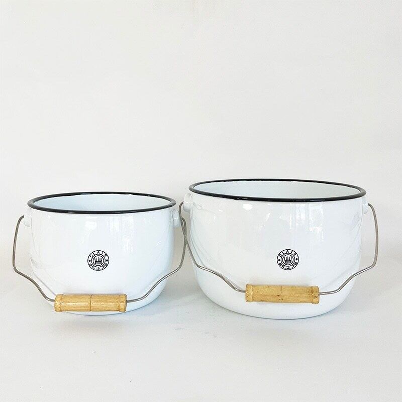 花生けや鉢カバーとしてガーデニングにディスプレイすれば、ホーローの光沢が植物をより美しく際立たせます。